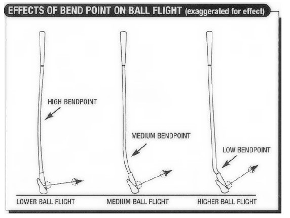 샤프트를 선택함에 있어 재질 외에 중요한 요소가 하나 더 있는데, 그것을 '킥포인트'라고 합니다. 우리의 눈에는 직접 보이지는 않지만 스윙을 할 때에 샤프트가 휘어지는데 임팩트 시에도 마찬가지 입니다. 휘어지는 이 부분을 '킥포인트'라고 말합니다.